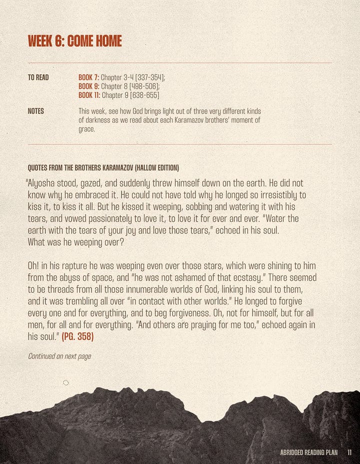 Hallow has put together 40 days of scripture, reflections, plus readings from The Brothers Karamazov and The Return of the Prodigal Son by Fr. Henri Nouwen, all guiding you through the story and its key themes without you having to pick up the (hefty!!!) book at all.